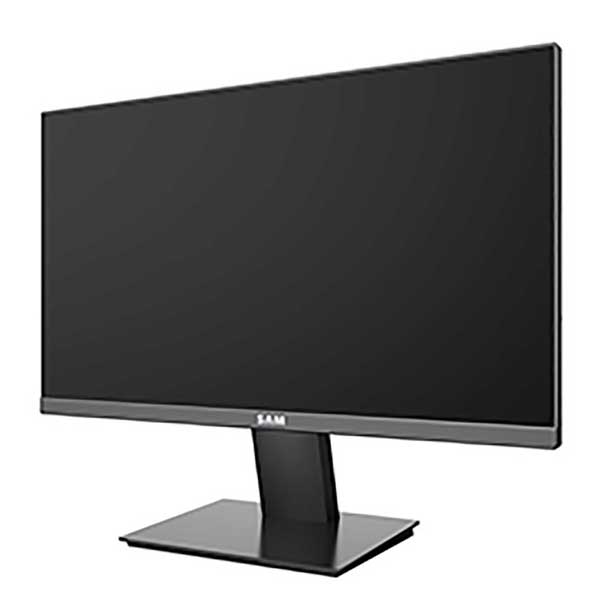 سام در طراحی این نمایشگر از یک پایه بیضی شکل استفاده نموده که از استحکام و مقاومت بالایی دارد و به راحتی صفحهنمایش را بر روی خود نگه میدارد. جنس پایه از پلاستیک مرغوب است و در برابر فشار و ضربات احتمالی مقاومت بالایی از خود نشان میدهد و بدنه نیز به صورت تمام مشکی طراحی شده که نمای خاصی به میز کاری شما میدهد و با هر فضایی به سرعت ست میشود. صفحه کاملا تخت بوده و حاشیهای اطراف نیز تقریبا صفر بوده که موجب زیبایی بیشتر مانیتور شده است.